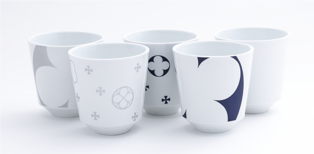 このような天草陶石研究開発推進協議会の熱い思いをもって、2015年に、天草陶石を世界に発信するためにブランド「Amacusa」を立ち上げました。「Amacusa」は天草のキリシタン文化の風土と歴史をモチーフに、グーテンベルグ活版印刷機で印刷されたイソップ物語のポルトガル語ローマ字表記を使用しています。
